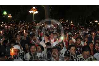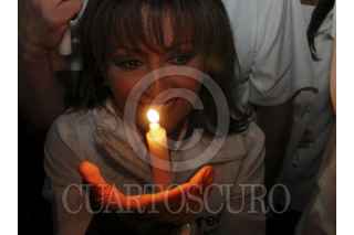 TLAXCALA, TLAXCALA, 04ABRIL2016.- La parte frontal del Palacio de Gobierno en la capital del estado se vio iluminada por cientos de velas y veladoras en un ritual que encabezó la abanderada del PRD a la gubernatura de Tlaxcala y senadora con licencia, Lorena Cuéllar Cisneros. En el primer minuto de este lunes, cientos de simpatizantes de la abanderada y militantes perredistas se dieron cita frente a Palacio de Gobierno. También llegaron de los municipios, maestros, seguidores y su equipo de trabajo. La animación con porras marcó el inicio de esta campaña. FOTO: JORGE LEZAMA /CUARTOSCURO.COM