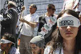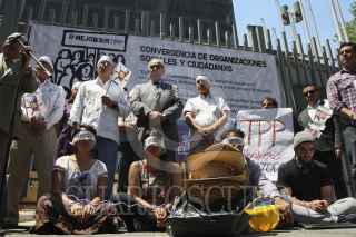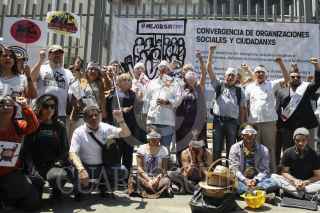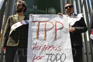 CIUDAD DE MÉXICO, 05ABRIL2016.- Integrantes de la "Convergencia de organizaciones sociales y ciudadanos México Mejor Sin TPP" realizaron un performance frente a las instalaciones de la Secretaría de Economía para exigir que se transparente todo lo relacionado con el Tratado Transpacífico pues aseguran que otro tratado de libre comercio sólo empobrecerá más al país. FOTO: MARÍA JOSÉ MARTÍNEZ /CUARTOSCURO.COM