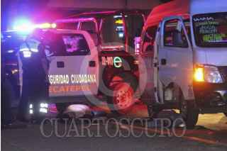 ECATEPEC, ESTADO DE MÉXICO, 05ABRIL2016.- Dos pasajeros perdieron la vida y uno más fue trasladado a un nosocomio debido a que fue lesionado por arma de fuego después de que trató de enfrentar a delincuentes que asaltaban un trasporte público. Los hechos ocurrieron en las inmediaciones de la colonia Industrial Cerro Gordo sobre la Vía Morelos. FOTO: DIEGO REYES /CUARTOSCURO.COM