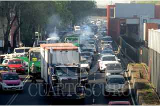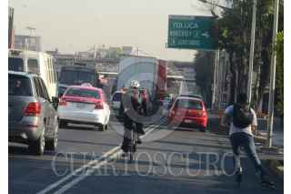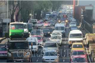 CIUDAD DE MÉXICO, 05ABRIL2016.- A pesar de la aplicación del programa vial "Hoy No Circula", el cual contemplo el día de hoy la restricción de circulación para los coches con engomado rosa y terminación 7 y 8, que implica que no circulen cerca de un millón de vehículos particulares, los capitalino vivieron un intenso tráfico en las llamadas vías primarias. La calidad de aire se reporta como mala. Algunos ciudadanos prefirieron algún transporte alternativo como la bicicleta y los patines. FOTO: ARMANDO MONROY /CUARTOSCURO.COM