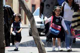 CUERNAVACA, MORELOS, 05ABRIL2016.- Después de haber concluído las vacaciones de Semana Santa, niños de educación básica regresaron a clases. Niñas caminan de la mano de sus padres al término de sus horas de estudio. FOTO: PATRICIA MORALES /CUARTOSCURO.COM