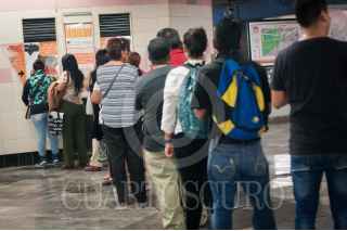 CIUDAD DE MÉXICO, 05ABRIL2016.- La afluencia de usuarios del metro aumentó alrededor de 15 a 17% durante el primer día de las nuevas disposiciones por el Hoy No Circula. Miles de personas regresan a sus casas durante las "horas pico" en el metro Chapultepec. FOTO: DIEGO SIMÓN SÁNCHEZ /CUARTOSCURO.COM