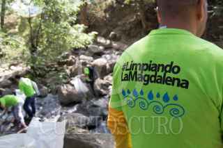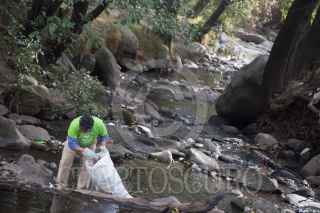 CIUDAD DE MÉXICO, 06ABRIL2016.- Carlos Madrazo Silva, Secretario General del Partido Verde Ecologista de México (PVEM) y Fernando Mercado, encabezó una limpieza intensiva en el Río Magdalena, único río vivo en la Ciudad de México. Durante la jornada, brigadas retiraron botellas de todo tipo, plásticos, llantas, entre otros objetos que contaminaban el río que aporta alrededor del 30 por ciento del agua que se consume en la capital. FOTO: TERCERO DÍAZ /CUARTOSCURO.COM