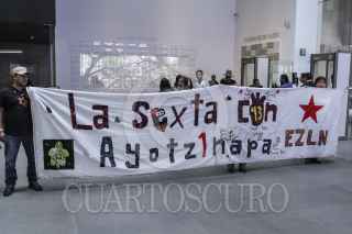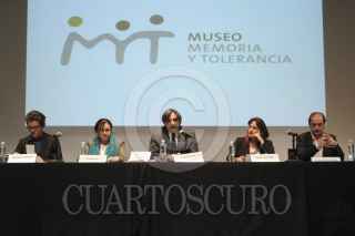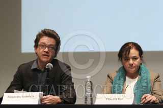 CIUDAD DE MÉXICO, 06ABRIL2016.- Alejandro Valencia y Claudia Paz, integrantes del Grupo Interdisciplinario de Expertos Independientes (GIEI) de la Comisión Interamericana de Derechos Humanos, durante la conferencia de prensa en el Museo Memoria y Tolerancia. Los expertos informaron que la Procuraduría General de la República (PGR), a faltado sistemáticamente los acuerdos en torno a la labor conjunta que realizan en el caso Ayotzinapa, al haber difundido un informe sobre el tercer peritaje de fuego en el basurero de Cocula y en el cual no hay consenso entre los peritos que realizaron las pruebas. El grupo señaló que la procuraduría a faltado a los acuerdos en el sentido de que antes de cualquier acción o difusión de avances en la investigación, se tendría que haber reunido con los integrantes del grupo y, fundamentalmente, con familiares de las victimas, en este caso, con los padres de los normalistas de ayotzinapa desaparecidos. En la imagen, integrantes de la Sexta declaración del EZLN, realizan una manifestación de solidaridad con Ayotzinapa en las instalaciones del museo. FOTO: ADOLFO VLADIMIR / CUARTOSCURO.COM