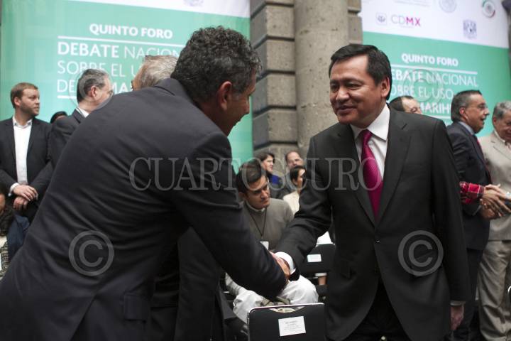 CIUDAD DE MÉXICO, 06ABRIL2016.- Miguel Ángel Osorio Chong, secretario de Gobernación, durante la clausura del quinto foro "Debate Nacional sobre el Uso de la Mariguana", que se realizó en el Palacio de Minería. FOTO: MOISÉS PABLO /CUARTOSCURO.COM