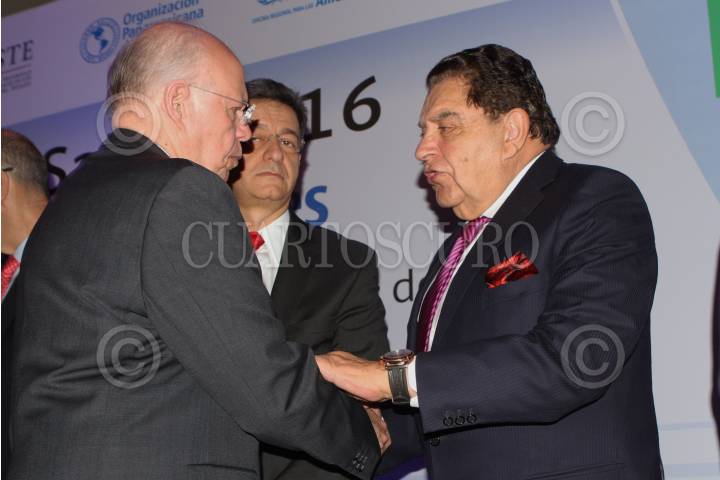 CIUDAD DE MÉXICO, 07ABRIL2016.- José Narro, secretario de Salud federal, saluda a Mario Kreutzberger "Don Francisco", durante la Reunión Técnica sobre la Diabetes en las Américas, en el marco del Día Internacional de la Salud. Ahí el encargado de la salud pública nacional señaló que en el 2014 murieron en México 90 mil personas por este padecimiento, y que actualmente uno de cada 7 decesos en nuestro país está vinculado a esta epidemia. FOTO: MOISÉS PABLO /CUARTOSCURO.COM