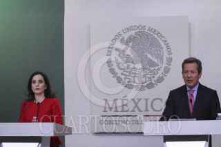 CIUDAD DE MÉXICO, 07ABRIL2016.- Ana Paola Barbosa Fernández, jefa de la Oficina de la Secretaría de Relaciones Exteriores y Eduardo Sánchez Hernández, Coordinador de Comunicación Social y Vocero del Gobierno de la República, durante la conferencia de prensa con motivo de la visita de estado de Enrique Peña Nieto, presidente de México, a Alemania y Dinamarca. FOTO: ADOLFO VLADIMIR /CUARTOSCURO.COM