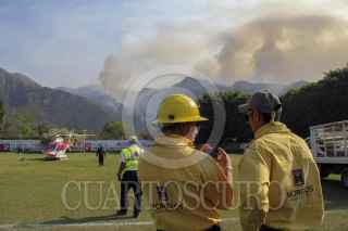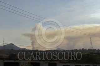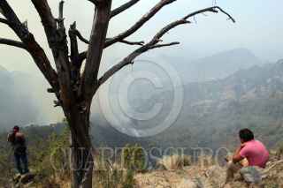 TEPOZTLAN, MORELOS, 07ABRIL2016.- Decenas de brigadistas y bomberos de Morelos intentaron controlar un incendio forestal en la zona de Santo Domingo, el siniestro fue provocado por una quema agrícola que se salio de control. Helicópteros de la Ciudad de México y el estado de México apoyaron con helicópteros para apagar el fuego, así mismo habitantes de Tepoztlan habilitaron centros de acopio. FOTO: PATRICIA MORALES /CUARTOSCURO.COM
