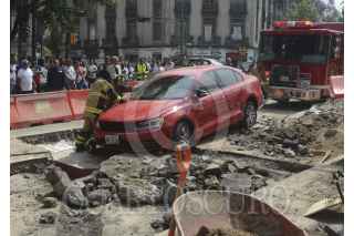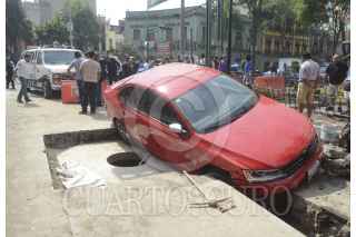 CIUDAD DE MÉXICO, 07ABRIL2016.- Un auto atropello a una señora en la calle de Tolsa y Bucareli, esto entre el caos peatonal de las obras de renovación del sistema eléctrico que esta llevando a cabo la Comisión Federal de Electricidad en toda la zona centro de la ciudad. La unidad automotriz termino entre las zanjas. FOTO: ARMANDO MONROY /CUARTOSCURO.COM