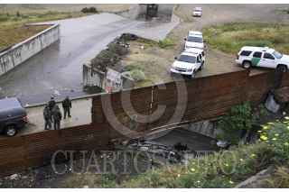 TIJUANA, BAJA CALIFORNIA, 07ABRIL2016.- Un automovilista resultó ileso después de volcarse sobre la avenida Internacional esta tarde. De acuerdo con algunos testimonios, el tripulante del auto perdió el control ocasionando que cayera al fondo de un canal de desagüe que pasa por debajo del muro divisorio. Agentes de la patrulla fronteriza acudieron del lado americano a tomar conocimiento del hecho, así mismo del mexicano asistieron socorristas del Cuerpo de Bomberos y Cruz Roja para atender al accidentado, lo cual fue innecesario debido a que se dio a la fuga. FOTO: CHRISTIAN SERNA /CUARTOSCURO.COM