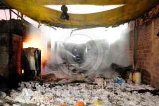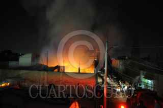 ECATEPEC, ESTADO DE MÉXICO., 08ABRIL2016.- Fuerte incendio consumió una empresa de reciclado de plásticos, ubicada en la calle Nogales y Jazmín en la colonia Ejidos de San Cristóbal. Personal de bomberos de este municipio, lograron controlar el incendio evitando que se propagara a una gasolinera que se ubica a unos metros de este lugar. FOTO: LUIS CARBAYO /CUARTOSCURO.COM