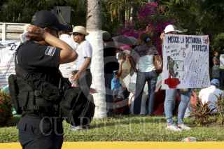ACAPULCO, GUERRERO, 08ABRIL2016.- Maestros se manifestaron contra la evaluación a docentes, la cual forma parte de los preceptos de la reforma educativa impulsada por el gobierno federal. Los inconformes bloquearon el bulevar de las Naciones entre consignas y carteles. FOTO: BERNANDINO HERNÁNDEZ /CUARTOSCURO.COM