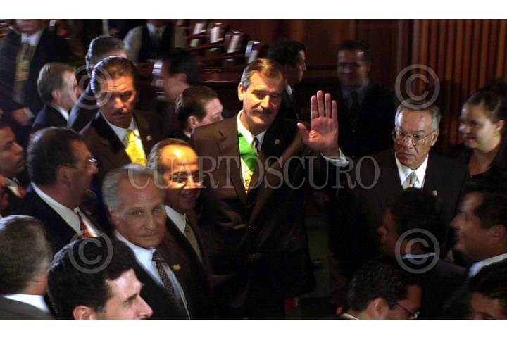 Martí Batres, coordinador de los diputados perredistas, abandona la sala de sesiones de San Lázaro, mientras Beatríz Paredes contestaba por tercera ocasión un informe presidencial. FOTO: Juan Pablo Zamora/CUARTOSCURO.COM