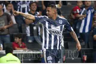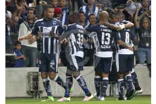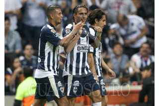 MONTERREY, NUEVO LEÓN, 09ABRIL2016.- Aldo De Nigirs y Edwin Cardona del equipo de los Rayados del Monterrey celebran los goles ante el equipo de Jaguares de Chiapas, en el estadio BBVA Bancomer, partido correspondiente a la jornada 13 de la Liga MX, Clausura 2016. Marcador Final: Monterrey 6 - Chiapas 0. FOTO: GABRIELA PÉREZ MONTIEL / CUARTOSCURO.COM