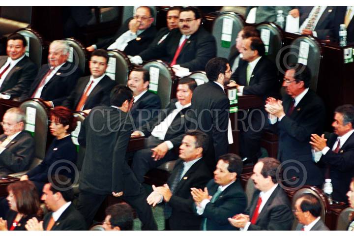 Jesús Ortega y Martí Batres, líderes parlamentarios del PRD en las Cámaras de Senadores y Diputados respectivamente, luego de abandonar el recinto legislativo donde el presidente Vicente Fox rindió su II Informe de Gobierno. FOTO: Juan Pablo Zamora/CUARTOSCURO.COM
