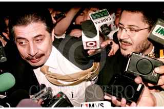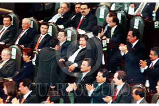 Jesús Ortega y Martí Batres, líderes parlamentarios del PRD en las Cámaras de Senadores y Diputados respectivamente, luego de abandonar el recinto legislativo donde el presidente Vicente Fox rindió su II Informe de Gobierno. FOTO: Juan Pablo Zamora/CUARTOSCURO.COM