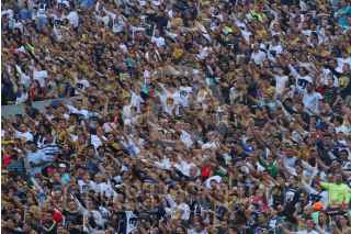 CIUDAD DE MÉXICO, 10ABRIL2016.- Universitarios cantan el himno de la UNAM previo al partido de los Pumas contra el León, en el Estadio Universitrio. FOTO: MOISÉS PABLO /CUARTOSCURO.COM