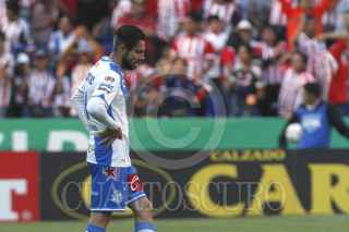 PUEBLA, PUEBLA, 10ABRIL2016.- El jugador poblano Robert Herrera durante el partido entre el Puebla de la Franja y las Chivas Rayadas de Guadalajara que culminó con marcador 3-0 a favor de los visitantes en partido correspondiente a la jornada 13 del torneo de Clausura 2016 de la Liga BBVA Bancomer MX disputado en el estadio Cuauhtémoc. FOTO: HILDA RIOS / CUARTOSCURO.COM