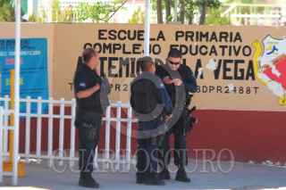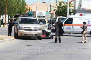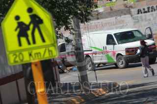 CIUDAD JUÁREZ, CHIHUAHUA, 11ABRIL2016.- La víctima acudió a dejar a su hijo a la escuela primaria "Artemio de la Vega", ubicada en las calles Arquitecto Adamo Boari y Arquitecto José Villagrán, cuando fue asesinado de varios balazos. El cuerpo del padre de familia quedo tendido a lado de una camioneta Tahoe Chevrolet color arena. Los hechos violentos fueron a la hora de la entrada del turno vespertino a los demás padres y alumnos quienes apenas ingresaban al complejo educativo. FOTO: NACHO RUIZ /CUARTOSCURO.COM