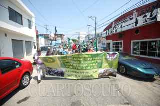VILLAHERMOSA, TABASCO, 11ABRIL2016.- Miembros de la Unión Nacional de Trabajadores (UNTA) marcharon por la avenida Gregorio Méndez con pancartas con reclamos en pancartas. Los mas de doscientos integrantes están plantados en las afueras de la oficina delegacional del Instituto Nacional de la Economía Social (INAES), donde pernoctaran el tiempo necesario hasta tener repuesta a sus peticiones. FOTO: MARCO POLO GUZMÁN HERNÁNDEZ /CUARTOSCURO.COM