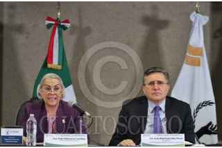 CIUDAD DE MÉXICO, 12ABRIL2016.- Luis Raúl González Pérez, presidente de la Comisión Nacional de los Derechos Humanos (CNDH), y la Dra. Ruth Villanueva, tercera visitadora general, presentaron el Diagnóstico Nacional de Supervisión Penitenciaria 2015 en el que detallaron las recomendaciones emitidas durante ese año en cuestión de derechos humanos en los Centros de Readaptación Social y penales. FOTO: MARÍA JOSÉ MARTÍNEZ /CUARTOSCURO.COM