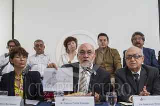CIUDAD DE MÉXICO, 12ABRIL2016.- Guadalupe Hortensia Mar Vázquez, presidenta del consejo del Premio Nacional de Periodismo, Everardo Partida Granados, coordinador de Comunicación social de la Universidad de Guadalajara, y Javier Solana Morales, durante la presentación de la convocatoria e imagen de la 15 entrega del PNP. FOTO: ISAAC ESQUIVEL /CUARTOSCURO.COM