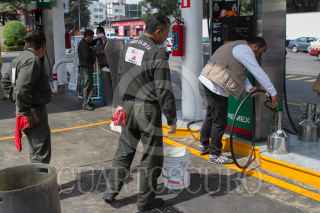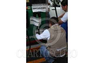 CIUDAD DE MÉXICO, 12ABRIL2016.- La gasolinera ubicada en la calle de Puente de La Morena y Patriotismo fueron verificadas sus bombas por parte de la Procuraduría Federal del Consumidor (Profeco), tras la revisión de sus bombas con varias jarras se determinó que los litros no eran de a litro, sin embargo las autoridades encabezadas por su titular Ernesto Nemer Álvarez, no colocaron los sellos correspondientes, ya que argumentaron que la diligencia seguía en curso, daban un estimado de seis horas para hacerlo. Los encargados de la gasolinera abrieron el servicio tras el operativo, lo que significa que los clientes que llegaban a despachar gas serían con litros incompletos, mientras la Profeco se decidía a aplicar la ley. FOTO: MOISÉS PABLO /CUARTOSCURO.COM