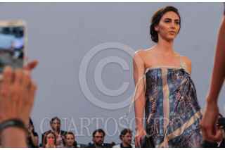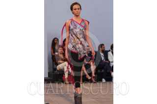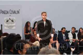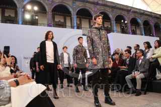 CIUDAD DE MÉXICO, 12ABRIL2016.- Ayer, los diseñadores Ricardo Covalin y Cristina Pineda presentaron ayer en la pasarela de inauguración del Mercedes Fashion Week, las prendas que confeccionaron en colaboración con el colectivo de moda Los Vladimirovich. FOTO: MARÍA JOSÉ MARTÍNEZ /CUARTOSCURO.COM