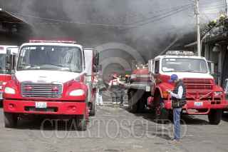 GUADALAJARA, JALISCO. 12ABRIL2016.- Esta tarde se registro un fuerte incendio en una bodega de plásticos del mercado de Abastos ubicada en las calles de Nopal y Mandarina, en dicho incidente participaron personal de Protección Civil y Bomberos del Estado, así como de bomberos de diversas corporaciones, como Guadalajara, Zapopan, Tlaquepaque, Tonalá y cuerpos médicos como Cruz Roja y Cruz Verde. FOTO : CUARTOSCURO.COM