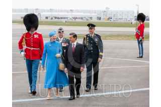 COPENHAGUE, REINO DE DINAMARCA, 13ABRIL2016.- El Presidente Enrique Peña Nieto y su esposa, arribó esta capital para realizar una Visita de Estado a Dinamarca. A su llegada a la Terminal Vilhelm Lauritzen del Aeropuerto Internacional, el Mandatario mexicano fue recibido por Su Majestad, la Reina Margarita II de Dinamarca con una ceremonia que incluyó una revista a la Guardia de Honor. FOTO: PRESIDENCIA / CUARTOSCURO.COM