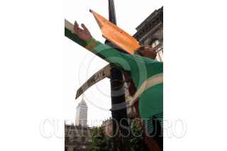 Doña Carmen Valdéz Pimienta, de 60 años, es una de las 150 personas que permanecen en protesta frente al Senado de la República, en demanda del pago de pensiones. Esta mujer fue despedida injustificadamente de la planta de PEMEX en Cd. Madero, Tamaulipas, donde trabajó por más de 35 años como soldador. FOTO: Pedro Mera/CUARTOSCURO.COM