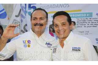 CANCÚN, QUINTANA ROO, 13ABRIL2016.- Julián Ricalde Magaña, candidato del PAN-PRD a la presidencia municipal de Benito Juárez (Cancun), inició su campaña con una caminata acompañado del candidato a Gobernador del estado Carlos Joaquín. FOTO: ELIZABETH RUIZ /CUARTOSCURO.COM
