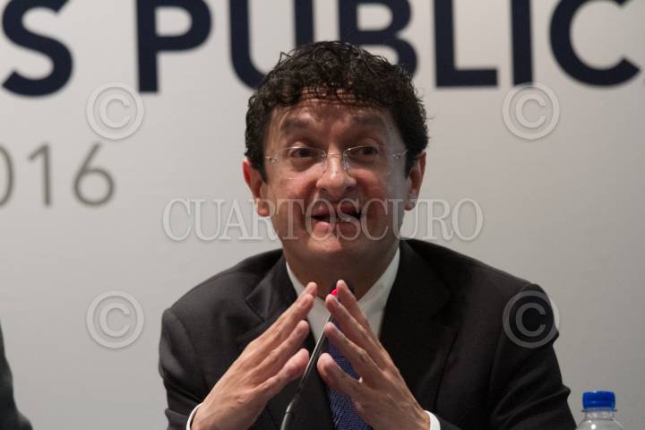 CIUDAD DE MÉXICO, 14ABRIL2016.- Eduardo Bohórquez, director ejecutivo de Transparencia Mexicana, y Alejandra Palacios, comisionada presidenta del la Comisión Federal de Competencia Económica (Cofece), durante los diálogos sobre las contrataciones públicas. FOTO: MOISÉS PABLO /CUARTOSCURO.COM