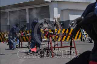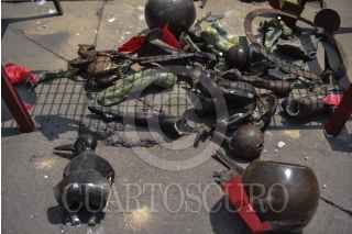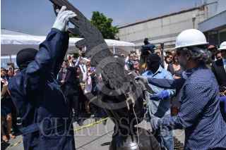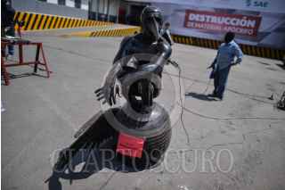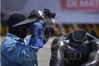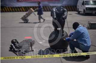 CIUDAD DE MÉXICO, 14ABRIL2016.- Replicas de esculturas del artista mexicano Jorge Marín, son destruidas por trabajadores de la Procuraduría General de la República, después de que se asesguraran estas figuras en diferentes mercados y tiendas de la ciudad. FOTO: ADOLFO VLADIMIR /CUARTOSCURO.COM