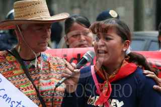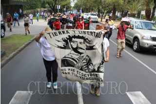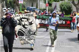 CIUDAD DE MÉXICO, 14ABRIL2016.- Al rededor de 100 personas la mayoria integrantes de colectivos y organizaciones sociales marcharon de La Estela de Luz a la llamada "Casa Blanca" ubicada Lomas de en Lomas de Chapultepec, para exigir detengan la obra de la autopista Toluca-Naucalpan en el tramo de Xochicuautla así mismo refrendaron su apoyo a la resistencia de Atenco, Ayotzinapa y Tiripetio. FOTO: SAÚL LÓPEZ /CUARTOSCURO.COM