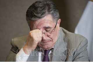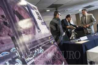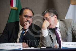 CIUDAD DE MÉXICO, 14ABRIL2016.- Luis Raúl González Pérez, presidente de la Comisión Nacional de Derechos Humanos (CNDH), y José Larrieta Carrasco, titular de la oficina especial para el "caso Iguala", encabezaron la conferencia de prensa para presentar una nueva línea de investigación en la que, de acuerdo con los hechos observados por la CNDH, se presume la existencia de una ruta de desaparición adicional a la reportada por la PGR y en la que estarían implicados policías de Huitzuco, Guerrero. FOTO: DIEGO SIMÓN SÁNCHEZ /CUARTOSCURO.COM