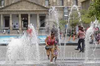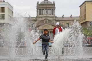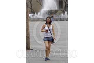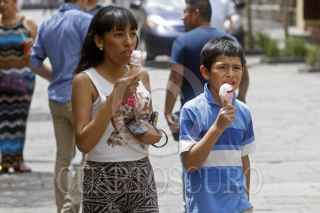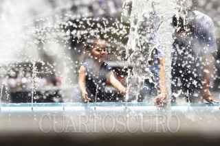 GUADALAJARA, JALISCO, 14ABRIL2016.- Las temperaturas en la perla tapatía han ido en aumento estos últimos días, motivo por el cual chicos y grandes tratan de refrescarse, ya sea con alguna bebida o helado así como mojándose en las fuentes publicas que se encuentran en el centro histórico de la ciudad. FOTO : FERNANDO CARRANZA GARCIA / CUARTOSCURO.COM