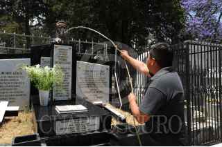 CIUDAD DE MÉXICO, 14ABRIL2016.- Iniciaron los preparativos de la tumba de Pedro Infante en el panteón Jardín, para mañana conmemorar un año mas de su partida. FOTO: ARMANDO MONROY /CUARTOSCURO.COM