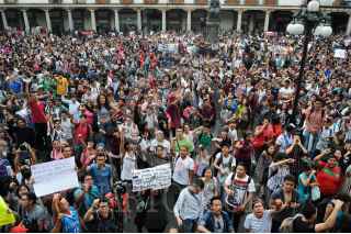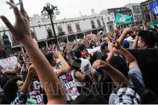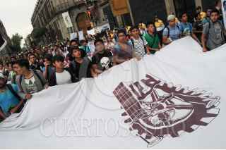 CIUDAD DE MÉXICO, 14ABRIL2016.- Miles de estudiantes del Instituto Politécnico Nacional (IPN) se concentraron afuera de la Secretaría de Educación Pública luego de una marcha que inicio en el Casco de Santo Tomás, para exigir al titular de la SEP, Aurelio Nuño Mayer, dé marcha atrás la adscripción del IPN a la SEP. FOTO: DIEGO SIMÓN SÁNCHEZ /CUARTOSCURO.COM
