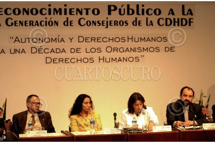 Emilio Alvarez Icaza y Miguel Concha después de la ceremonia de entrega del "Reconocimiento Público de la 1era generación de Consejeros de la Comisión de Derechos Humanos de D.F.", que se llevo acabo en el Museo Franz Mayer. FOTO: Victoria Valtierra/CUARTOSCURO.COM