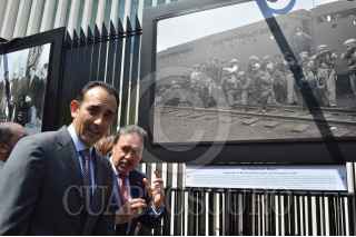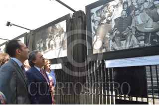 CIUDAD DE MÉXICO, 14ABRIL2016.- Roberto Gil Zuarth, presidente de la mesa directiva del Senado, y Emilio Gamboa Patrón, coordinador de los senadores del PRI, inauguraron la exposición fotográfica "Rumbo a la Constitución de 1917", montada en las rejas del Senado. FOTO: MOISÉS PABLO /CUARTOSCURO.COM