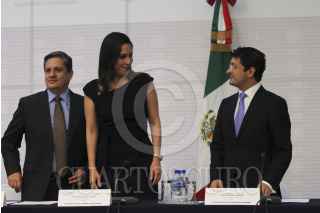 CIUDAD DE MÉXICO, 15ABRIL2016.- Ximena Puente de la Mora, Comisionada Presidente de Instituto Nacional de Acceso a la Información (INAI) y Virgilio Andrade Martínez, presidente de la Función Pública (SFP), durante la "inauguración de trabajos hacia el Plan de Acción 2016-2018 Alianza para el Gobierno Abierto", realizado en el salón José María Morelos y Pavón de la Secretaria de Relaciones Exteriores. FOTO: ADOLFO VLADIMIR /CUARTOSCURO.COM