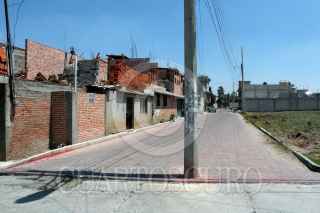 CONTLA, TLAXCALA, 14ABRIL2016.- Un poste que se ubica a mitad de la calle Juan Pablo II de la séptima sección de Contla se encuentra ahí desde hace varios años. A pesar de que la presidencia municipal remodelo la calle colocandole adoquin y la CFE ha realizado por años mantenimiento al cableado, ninguna dependencia ha podido reubicar el poste, los habitantes de la localidad expresaron que es un peligro latente para la vialidad. FOTO: JORGE LEZAMA /CUARTOSCURO.COM