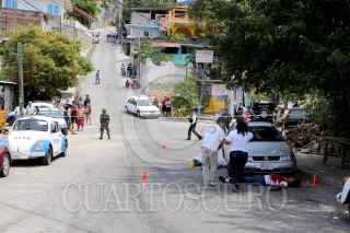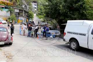 ACAPULCO, GUERRERO, 17ABRIL2016.- Diez personas fueron asesinadas en hechos distintos este domingo en Acapulco, seis de ellas relacionadas con el transporte público. Durante la mañana, cinco personas murieron por impactos de bala en un ataque a un sitio de taxis de la colonia Alto Icacos, el cual ocurrió alrededor de las 11 horas. De acuerdo a reportes en el lugar se efectuaba una asamblea de taxistas. En la agresión murieron de forma instantánea tres chóferes y una mujer, que fue identificada como dueña de un taxi. A pocos metros del sitio murió un quinto hombre. Una persona más resultó herida en el ataque. FOTO: BERNANDINO HERNÁNDEZ /CUARTOSCURO.COM