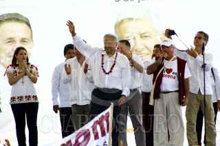 CANCÚN, QUINTANA ROO, 18ABRIL2016.- El político tabasqueño Andrés Manuel López Obrador encabezó una gira con el candidato de Morena a la gubernatura del estado, José Luis Pech, en estadio Toro Valenzuela. FOTO: ELIZABETH RUIZ /CUARTOSCURO.COM