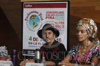 CIUDAD DE MÉXICO, 19ABRIL2016.- Roco Pachukote y Moyenei durante la presentación del festival Pachamama Fest, que se realizará el 4 de junio en la Plaza de Toros México. FOTO: ANTONIO CRUZ / CUARTOSCURO.COM
