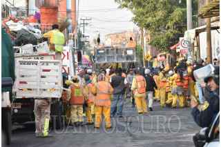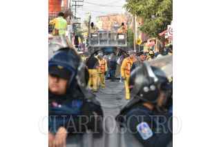 CIUDAD DE MÉXICO, 19ABRIL2016.- Un operativo por parte de la elementos de la Secretaría de Seguridad Pública CDMX se procedió el desalojo de varios puestos en el mercado de “Río Frío”, ubicado en la colonia Ramos Millán, los locatarios afectados en respuesta bloquearon avenida Te y Sur 175 en la delegación Iztacalco. Cientos de usuarios del Metrobus tuvieron que bajarse de las unidades que no pudieron seguir su ruta. Los manifestantes acusaron al delegado Carlos Estrada Meráz de esta orden, aunque las autoridades que se trato de una acción de recuperación de espacios. FOTO: ARMANDO MONROY /CUARTOSCURO.COM