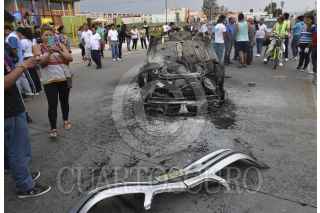 CHALCO, ESTADO DE MÉXICO, 19ABRIL2016.- Un vehículo fue incendiado por arte de los habitantes de la colonia unidad habitacional los Héroes Chalco, al intentar linchar a tres hombres que asaltaban el lugar; al llegar la policía a rescatar a los ladrones, atropellaron a unas personas, lo que originó más desastre. FOTO: ARMANDO MONROY /CUARTOSCURO.COM