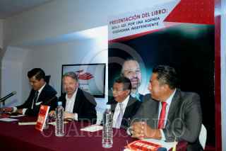 TLAXCALA, TLAXCALA, 19ABRIL2016.- Jorge G. Castañeda, ex secretario de Relaciones Exteriores, realizo la presentación de su libro "Solo así: Por una agenda ciudadana independiente", el cual busca ampliar el panorama del sistema político que se vive en México. El evento se suscitó en las instalaciones del Centro Cultural Universitario de la Universidad Autónoma de Tlaxcala (UAT) en donde participaron el Dr. Serafín Ortiz Ortiz y el maestro, Darwin Pérez y Pérez. FOTO: JORGE LEZAMA /CUARTOSCURO.COM
