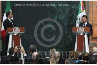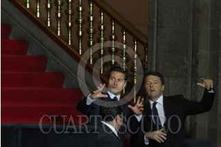 CIUDAD DE MÉXICO, 20ABRIL2016.- El presidente Enrique Peña Nieto recibió al Primer Ministro de Italia Matteo Renzi en el Palacio Nacional y ambo mandatarios ofrecieron un mensaje ante medios de comunicación e invitados. Una ligera lluvia retrasó el evento sin embargo la Ceremonia de Bienvenida continuará por la tarde. FOTO: MARÍA JOSÉ MARTÍNEZ /CUARTOSCURO.COM